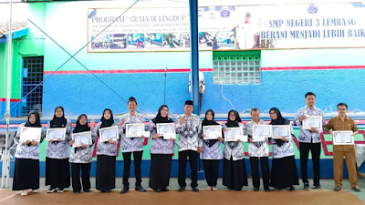 GURU DAN TU BERPRESTASI DIANUGERAHI PENGHARGAAN OLEH SMPN 3 LEMBANG